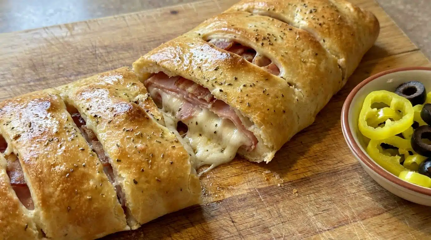 This Classic Deli Stromboli is filled with ham, salami, pepperoni, and melted mozzarella. It cooks fast and tastes like a pizza roll. If you enjoy quick baked dishes, you might also like this easy cake mix fruit recipe: easy cake mix fruit recipe.