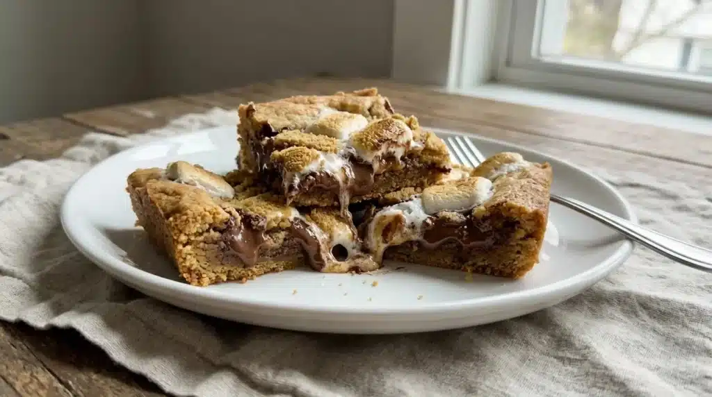 Indulge in these Cookie S'mores Bars that combine the classic flavors of s'mores with rich cookie dough, featuring layers of gooey marshmallow, chocolate, and crunchy graham crackers.