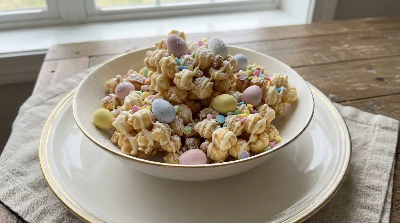 This snack mixes puff corn, mini marshmallows, and melted chocolate. You make it fast and you do not need baking. It is bright and festive for Easter and spring. You can serve it with a light soup like chicken and cabbage soup for a simple table.