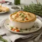 The sauce in chicken pot pie with crescent rolls is creamy and flavorful, tying the whole dish together. It’s usually made with a base of butter, flour, and chicken broth, which creates a thick, savory roux. Next, milk or cream is added for richness, along with seasonings like salt, pepper, and thyme for flavor. You can also use canned cream of chicken soup as a quick alternative. The sauce coats the chicken and vegetables, creating a hearty, satisfying filling. This combination of ingredients ensures your chicken pot pie is both comforting and delicious.